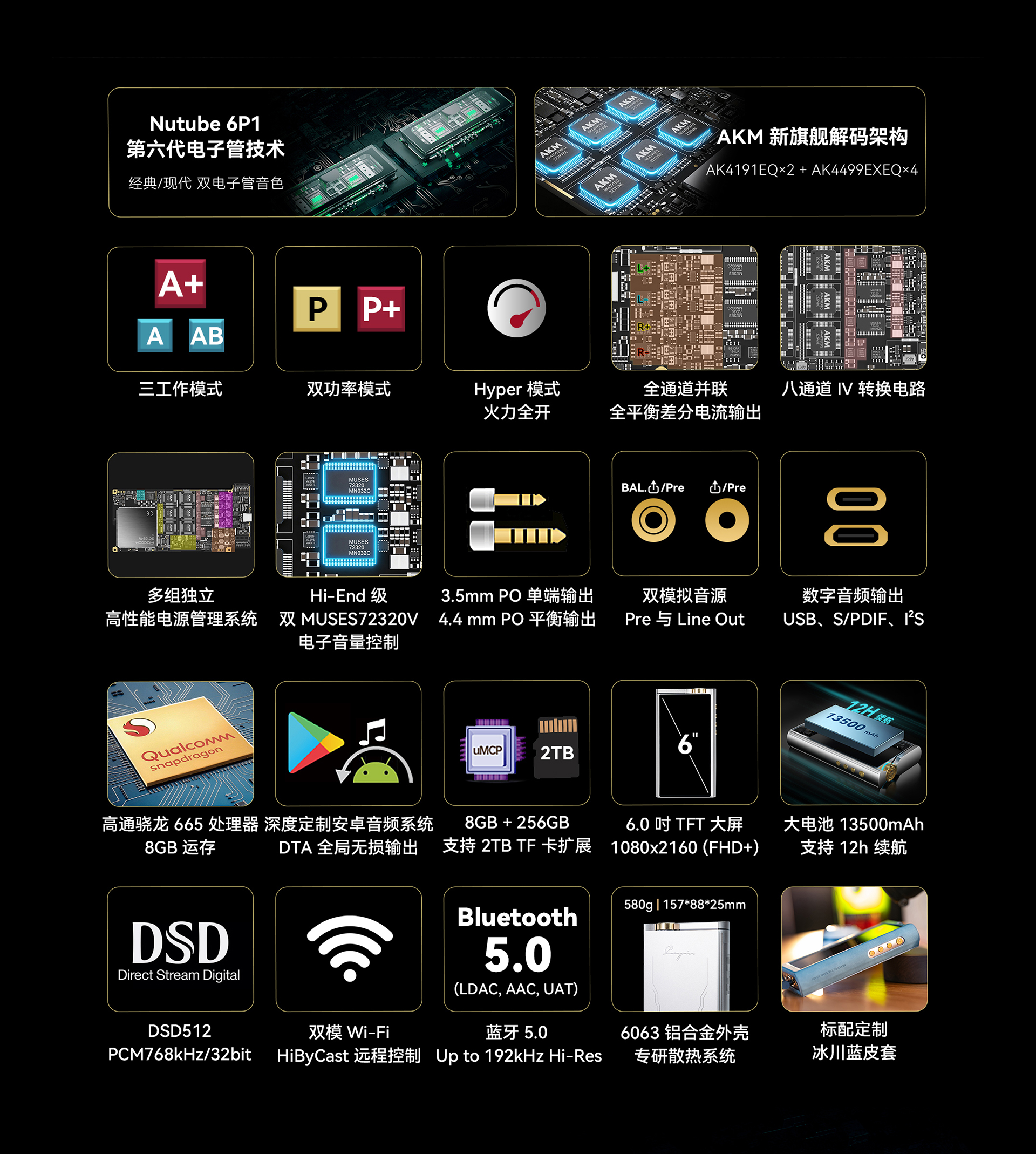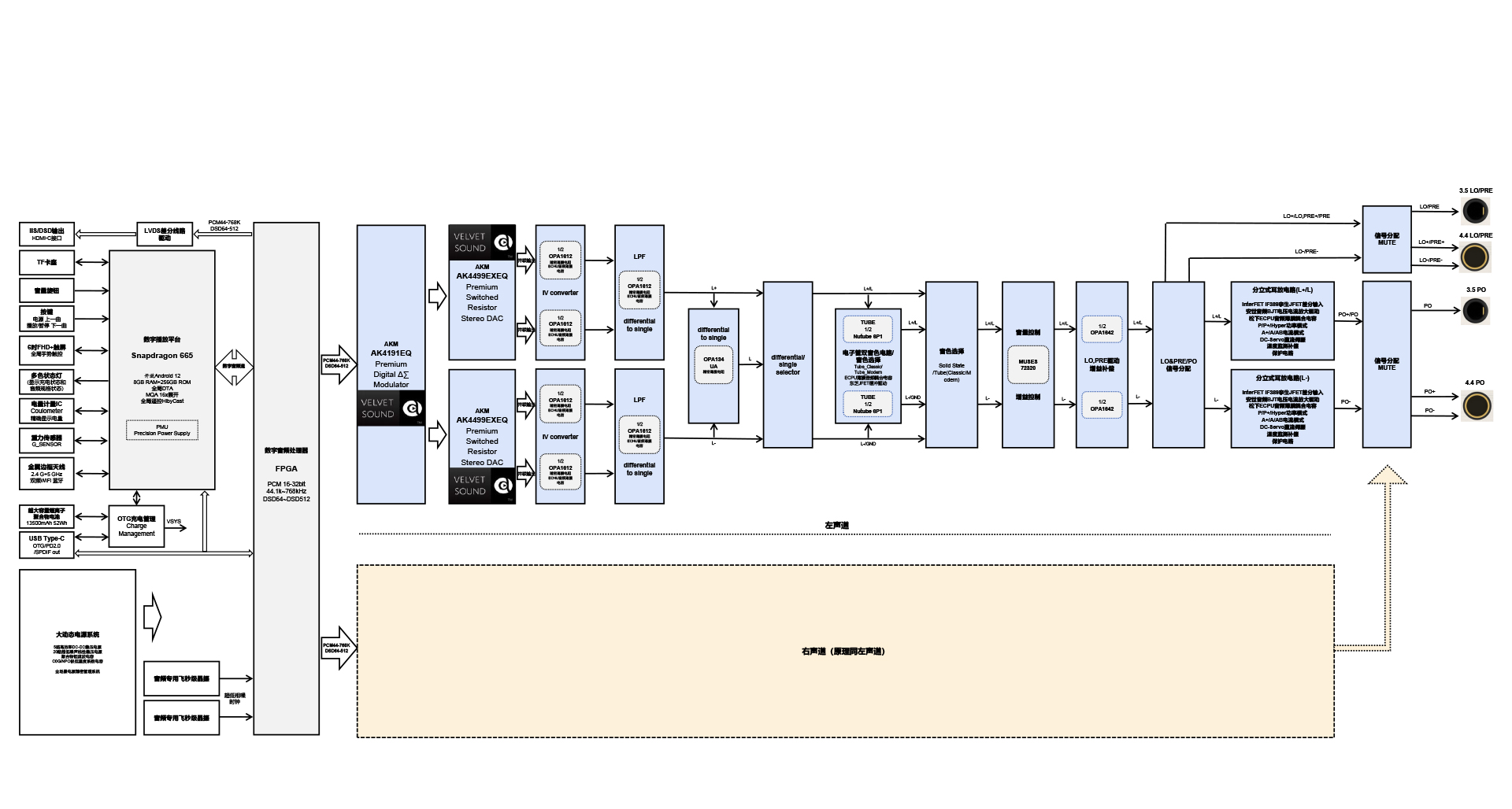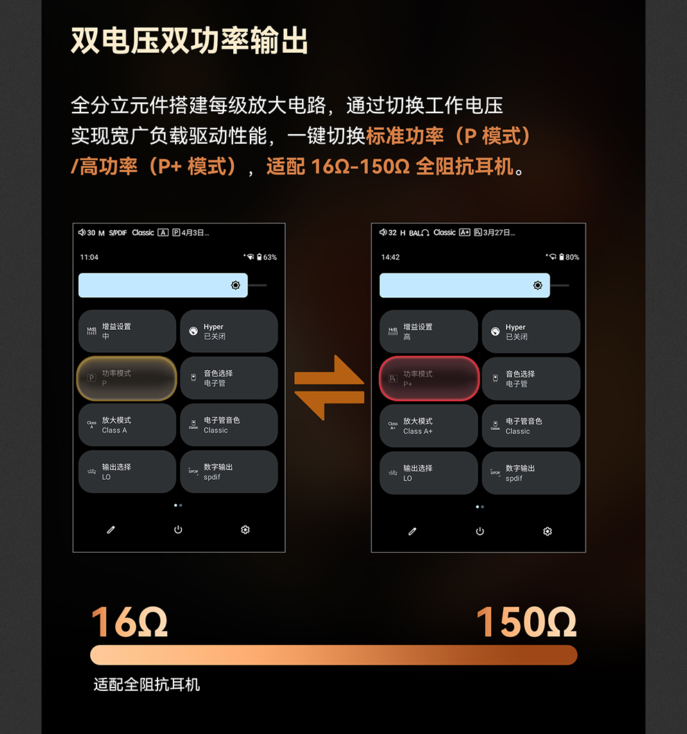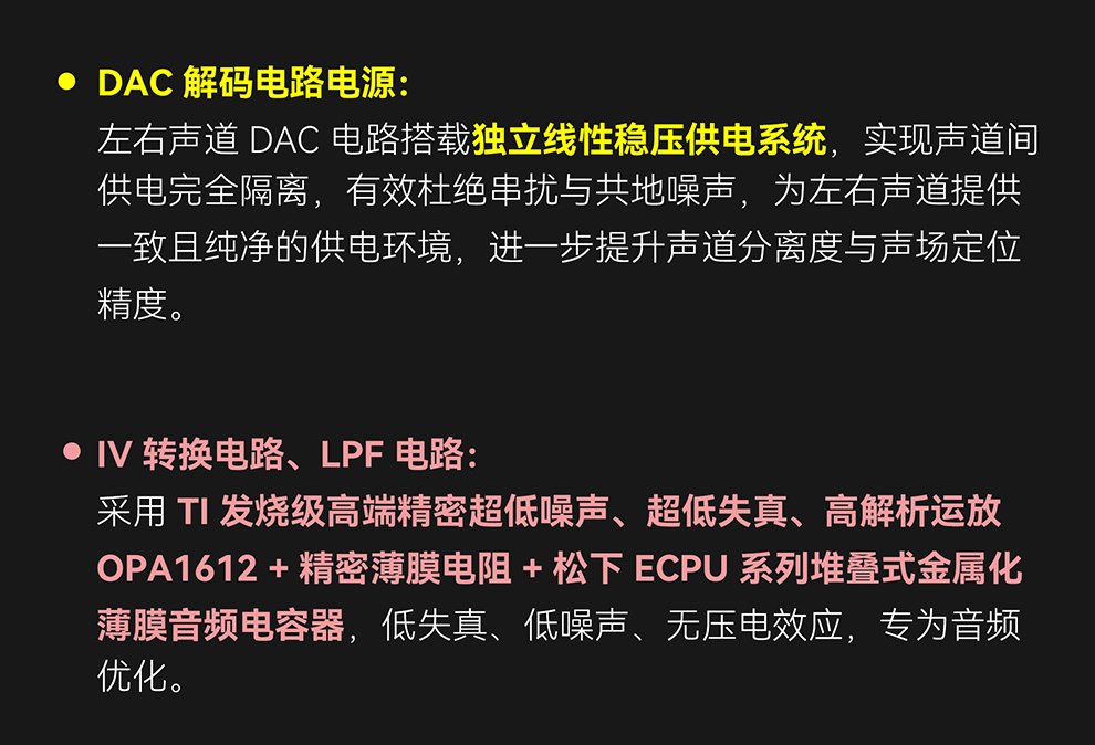 输出。3.5mm 单端/ 4.4mm 平衡、PO/LO/Pre 全模拟输出模式,